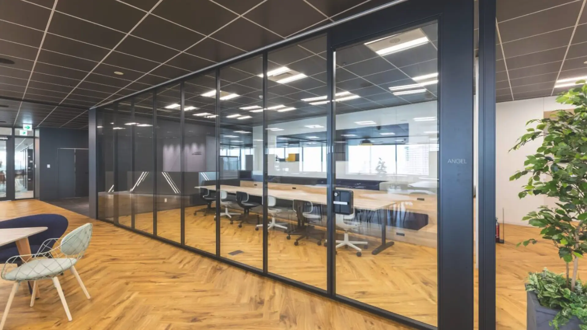 12名入室可能なガラス張り会議室がございます -